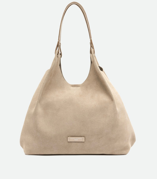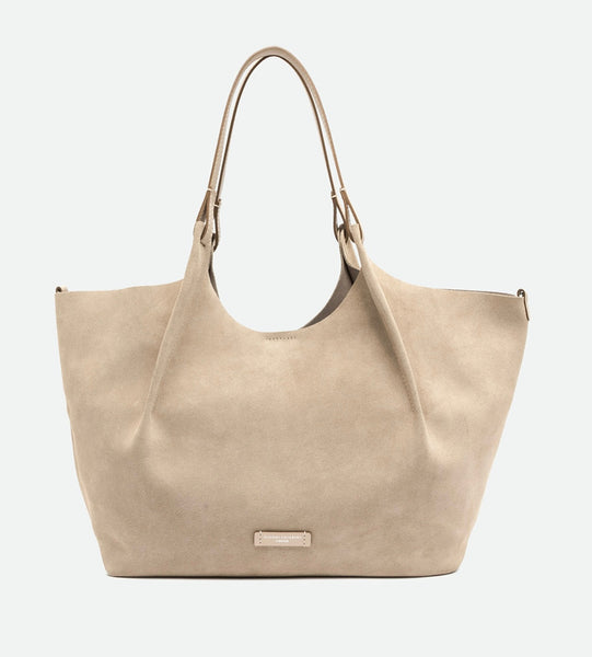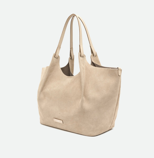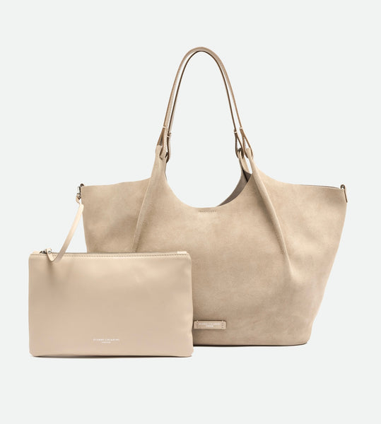 Die Ikone der Marke, die Tasche DUA, ist aus Wildleder mit einer einzigartigen Oberflächenstruktur gefertigt. Sie verfügt über ein ungefüttertes Einzelfach, obere Paspeln aus Leder und zwei dazu passende Henkel. Praktisch und essenziell, perfekt um jeden Look mit Stil zu vervollständigen. Sie kann in der Hand oder über der Schulter getragen werden.