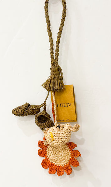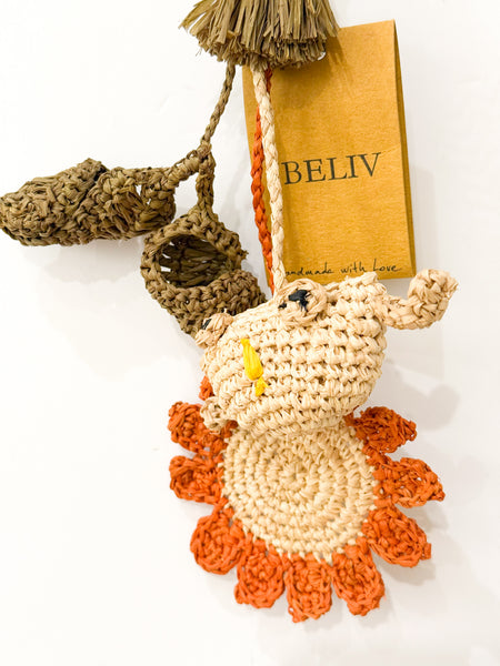 Taschenanhänger aus Bast, handgefertigt